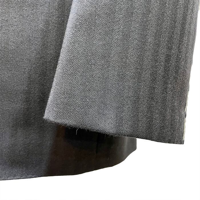 この生地は、非常に柔らかく、肌触りがよく、着心地がとても快適です。また、カシミヤの保温性により、寒い季節でも暖かく着ることができます。ヘリンボーン柄は、上品な光沢感があり、落ち感のある柔らかい素材で表現されており、非常に高級感があります。